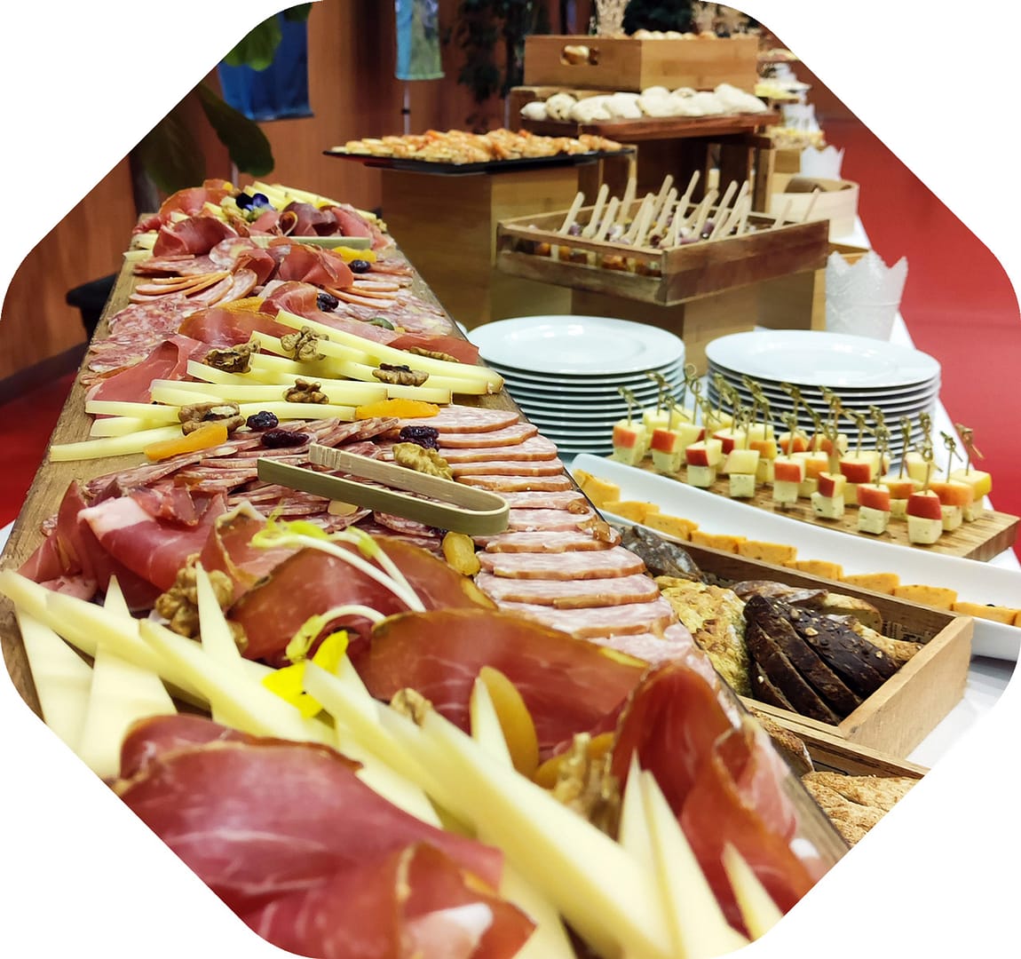 Que ce soit pour un cocktail, un buffet, un plateau-repas ou un repas assis, nous vous proposons des menus variés et savoureux, élaborés avec des produits de qualité et de saison.